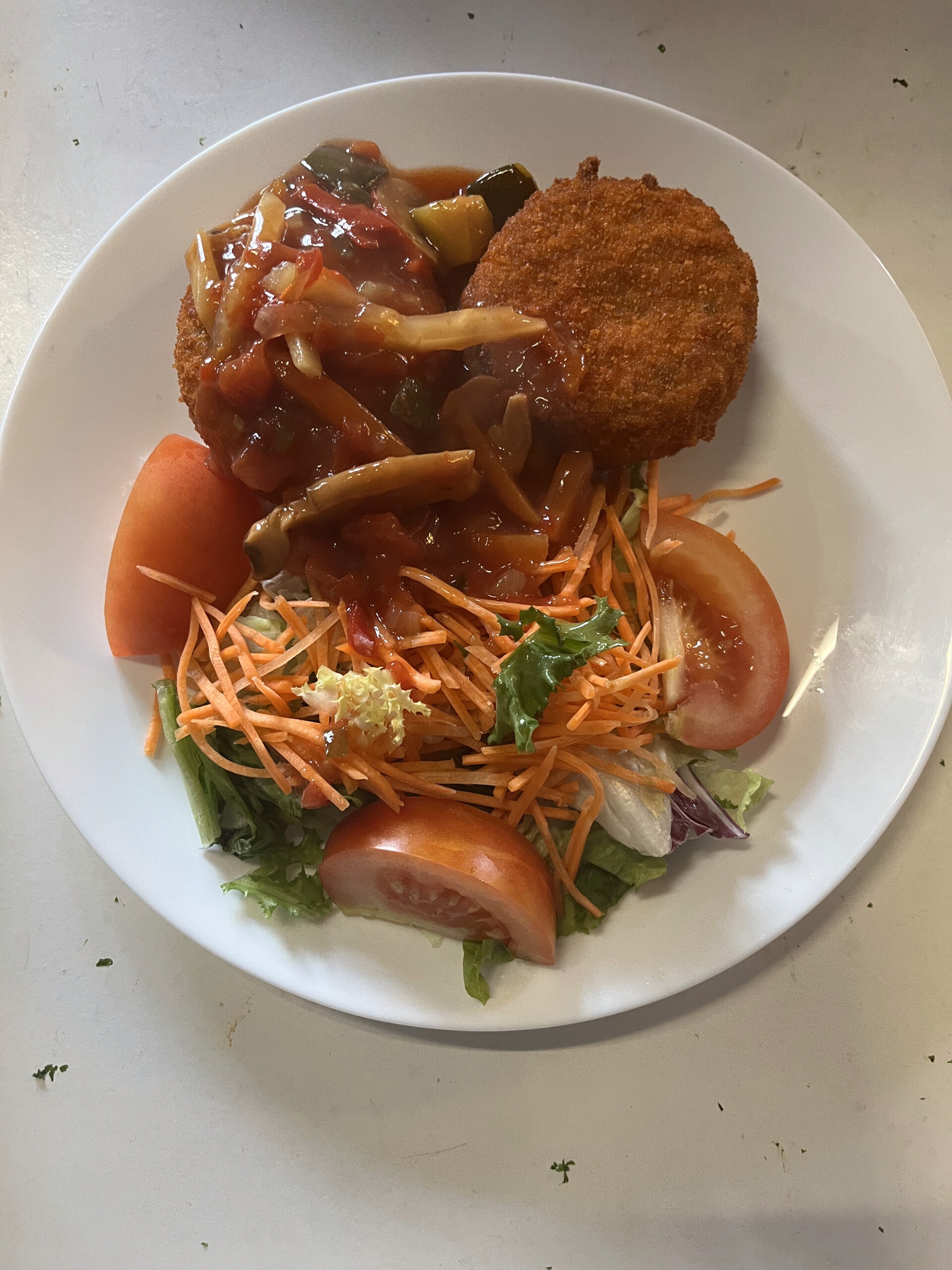 Vegetarische burger met provençaalse saus met frietjes